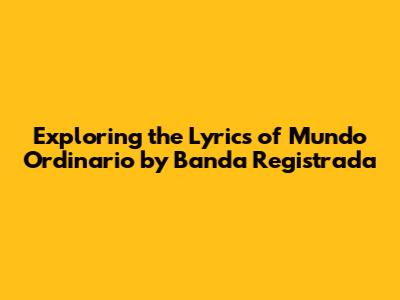 Hey music lovers! Ever gotten lost in the vibes of a song and felt like it was speaking directly to your soul? Well, today, we're diving deep into the lyrics of 'Mundo Ordinario' (Ordinary World) by Banda Registrada. This song, with its catchy melodies and relatable themes, has resonated with many. We'll break down the lyrics, explore their meaning, and see why this track continues to be a favorite. Let's get started, guys!