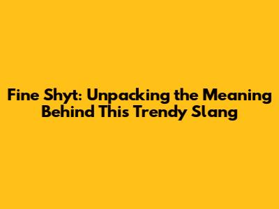 What Does "Fine Shyt" Actually Mean?