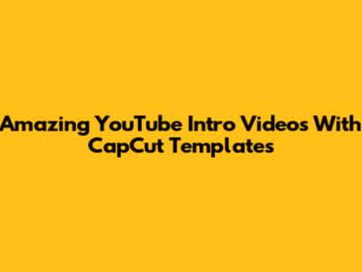 Amazing YouTube Intro Videos With CapCut Templates