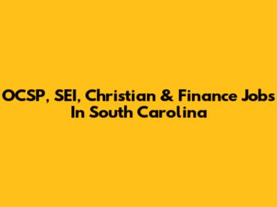 OCSP, SEI, Christian & Finance Jobs In South Carolina