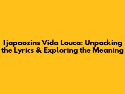 Hey music lovers! Ever stumbled upon Ijapaozin's track "Vida Louca" and found yourselves totally hooked? I get it! The song's got this undeniable vibe, a catchy beat, and those intriguing Portuguese lyrics. But, for those of us who aren't fluent in Portuguese, understanding the song's depth can be a bit tricky. That's where we come in! We're gonna dive deep into the world of Ijapaozin's "Vida Louca," breaking down the English lyrics, exploring the meaning behind them, and uncovering the song's overall message. Get ready to have your "Vida Louca" experience amplified!