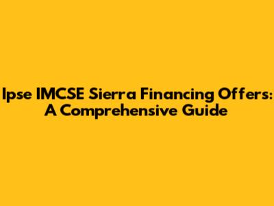 Navigating the world of Ipse IMCSE Sierra financing can feel like traversing a dense forest. But don't worry, guys! This guide is your compass, helping you understand the various financing offers available, ensuring you make informed decisions that align with your business goals. We'll break down everything from the basics of Ipse IMCSE Sierra to the nitty-gritty of financing options, making it easy to grasp and implement. Whether you're a seasoned pro or just starting out, understanding your financing options is crucial for growth and sustainability. So, let's dive in and illuminate the path to financial success with Ipse IMCSE Sierra!