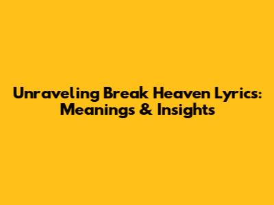 Unraveling 'Break Heaven' Lyrics: Meanings & Insights
