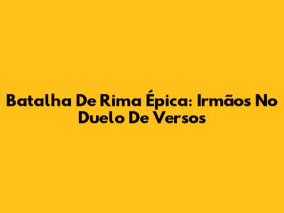 Batalha De Rima Épica: Irmãos No Duelo De Versos