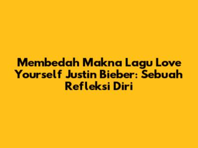 Jadi, apa arti dari lagu Love Yourself Justin Bieber? Jawabannya adalah tentang cinta diri, harga diri, dan kemandirian. Lagu ini adalah pengingat bahwa kita harus mencintai diri kita sendiri terlebih dahulu sebelum mencari cinta dari orang lain. Lagu ini juga mengajarkan kita untuk melepaskan diri dari hubungan yang tidak sehat dan memilih untuk bahagia.