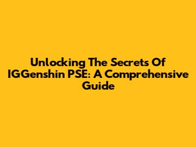 Unlocking The Secrets Of IGGenshin PSE: A Comprehensive Guide