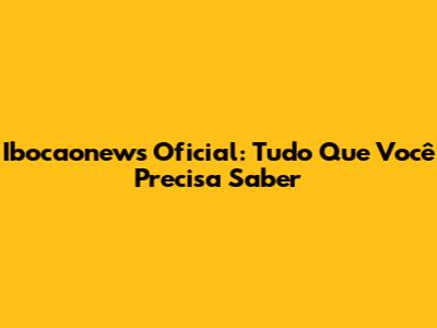 Ibocaonews Oficial: Tudo Que Você Precisa Saber