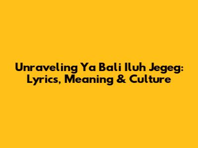 Unraveling 'Ya Bali Iluh Jegeg': Lyrics, Meaning & Culture