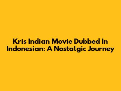 Kris Indian Movie Dubbed In Indonesian: A Nostalgic Journey