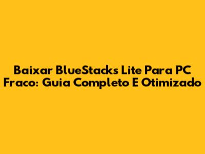 Baixar BlueStacks Lite Para PC Fraco: Guia Completo E Otimizado