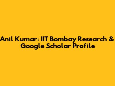 Anil Kumar: IIT Bombay Research & Google Scholar Profile