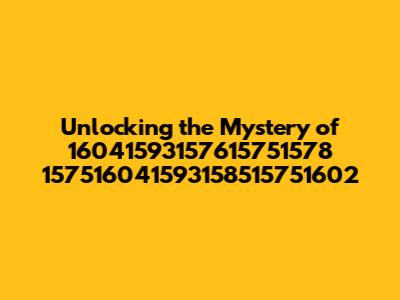 Hey everyone! Ever stumble upon something that just seems… mysterious? That's the feeling this string of numbers and characters gives off. We're diving deep to decode 16041593157615751578 157516041593158515751602! It looks like a code, right? Well, that's exactly what we're here to figure out: what does it mean and how does it function? We're going to break down this complex sequence, look at it from all angles, and try to understand what's hidden beneath the surface. I know it seems like a lot, but trust me, by the end of this, you'll be able to decode the information yourself. So, buckle up, grab your detective hats, and let's get started. Think of it like a treasure hunt, but instead of gold, the treasure is knowledge. Let's start with breaking down the sequence, and figuring out what it can reveal to us.