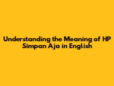 Alright, guys, let's dive into the meaning of "HP simpan aja" and break it down in English. This phrase is a common Indonesian expression, and understanding it can be super helpful if you're navigating the Indonesian language or culture. So, what exactly does it mean? In essence, "HP simpan aja" translates to "Just save the phone" or "Keep the phone" in English. It's a casual way of telling someone to keep their phone, usually to put it away or store it somewhere safe. But, as with many phrases, the actual meaning can be a bit more nuanced depending on the context. Sometimes it might refer to not using the phone at all and put it aside. Therefore, the meaning of HP simpan aja is not a literal translation, it carries some other meaning depending on the situation. The context in which this phrase is used is crucial to get a full grasp of its implications. For example, if you're in a meeting and you want people to focus, you might say "HP simpan aja", implying that everyone should put their phones away to avoid distractions. Similarly, if you are somewhere safe, and you don't need your phone to use it, you can just simpan aja your phone.