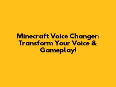 Minecraft Voice Changer: Transform Your Voice & Gameplay!